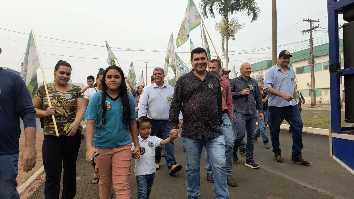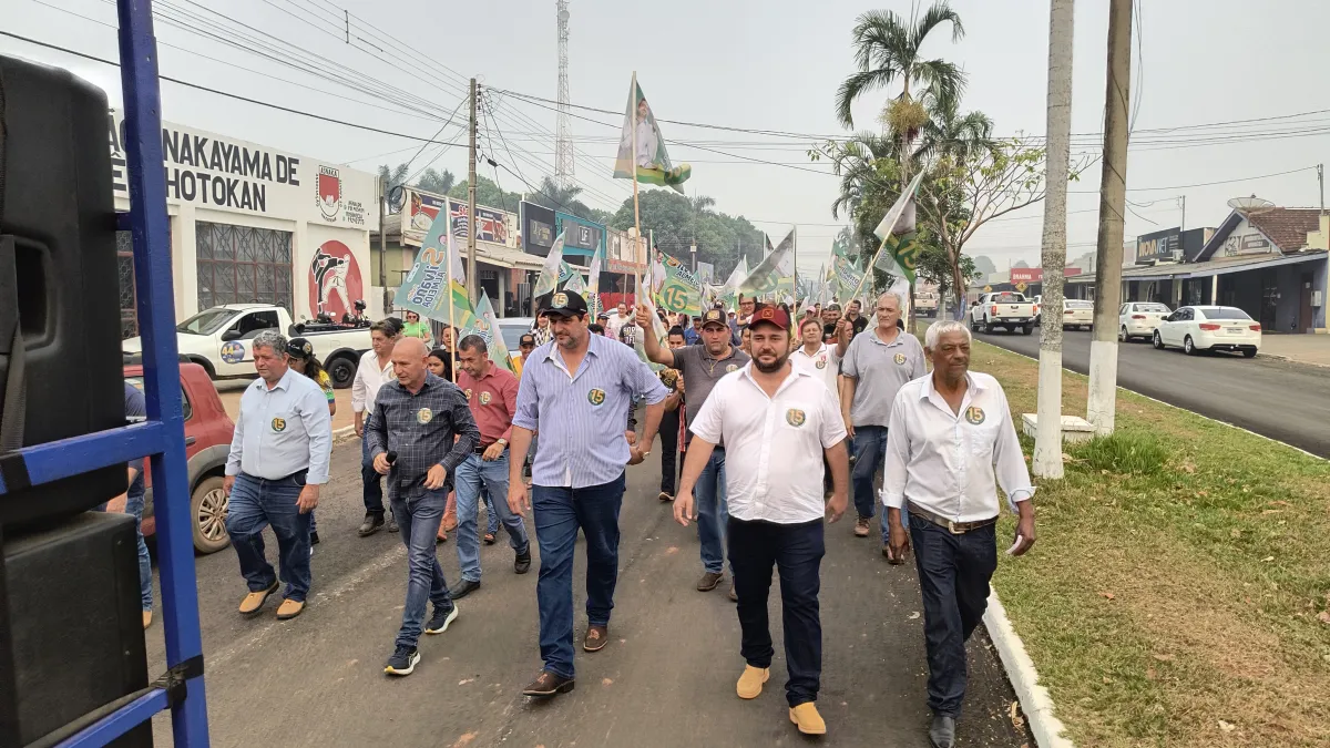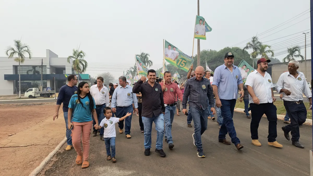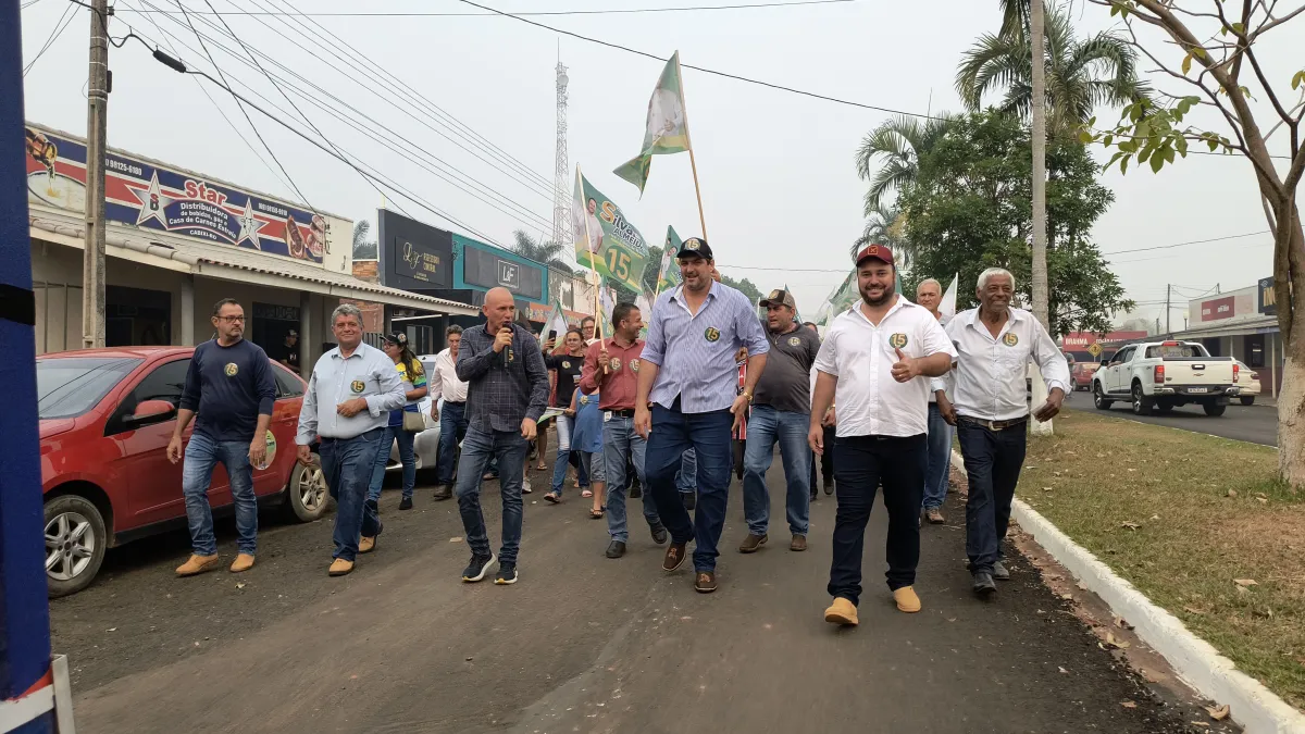 Silvano Almeida, candidato à prefeitura de Cabixi, realiza caminhada com o apoio do deputado estadual Ezequiel Neiva