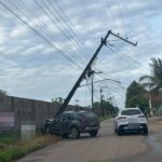 Carro atinge poste e deixa bairro Bela Vista sem energia em Vilhena