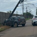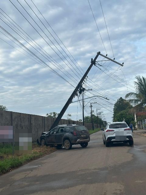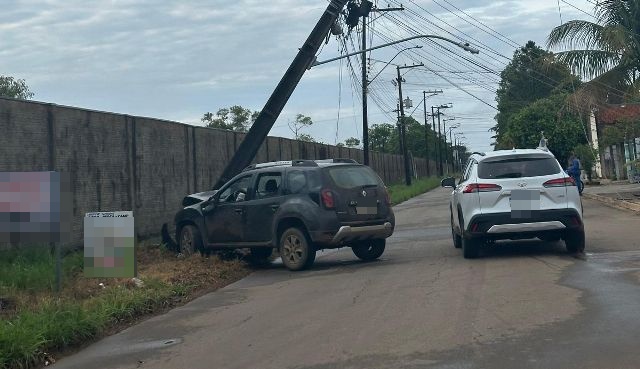 Um motorista que conduzia um Renault Duster perdeu o controle da direção e colidiu contra um poste de energia na avenida Liliana Gonzaga.