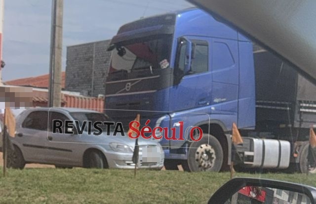 Câmeras de segurança flagraram o momento em que um Chevrolet Celta transitava do lado esquerdo da carreta quando tentou entrar na frente dela e acabou entrando na frente do veículo pesado que seguia pela via. O veículo de passeio foi atingido e arrastado por alguns metros pelo caminhão.