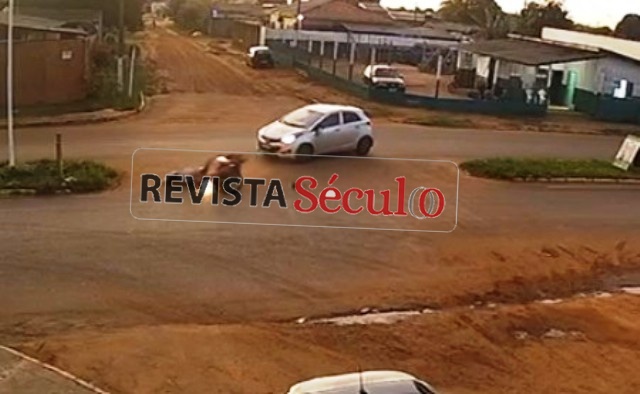 Vídeo mostra momento de colisão entre carro e moto em Vilhena