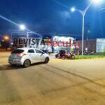 Na noite desta quinta-feira, 24 de setembro, um acidente de trânsito foi registrado na avenida Melvin Jones, em Vilhena, envolvendo um Hyundai HB20 e uma motoneta Honda Biz.