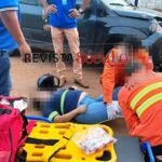 Com o impacto, a motociclista sofreu escoriações e suspeita de fratura em uma das pernas. Ela recebeu atendimento no local e foi encaminhada ao pronto-socorro do Hospital Regional por uma equipe do Corpo de Bombeiros.