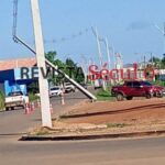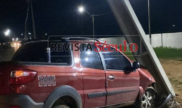 Um acidente registrado na madrugada deste domingo, 12 de outubro, em Vilhena, deixou um poste de energia derrubado e uma picape Fiat Strada bastante danificada em frente ao Parque de Exposições, região do bairro Bela Vista.