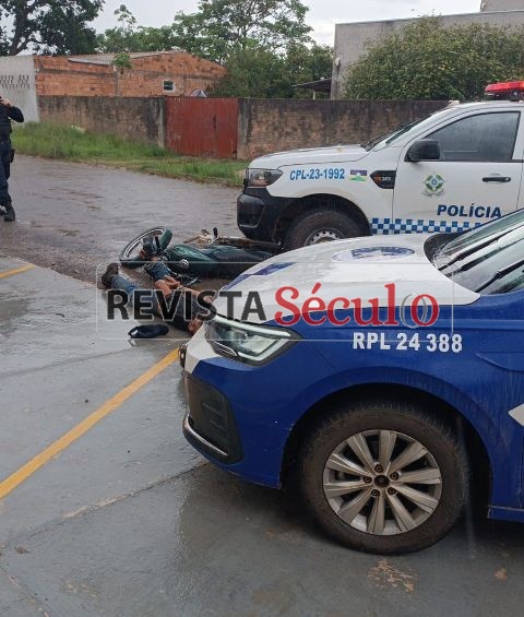 Ele pilotava uma motocicleta Honda CG Titan de cor verde e, ao perceber a aproximação dos policiais, tentou fugir pelas ruas do Setor 8.