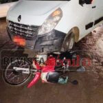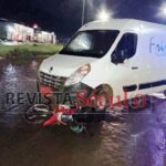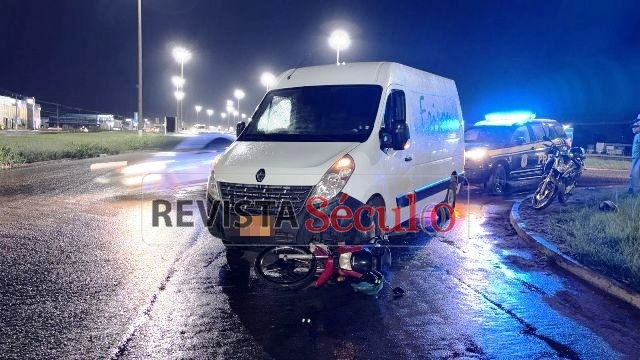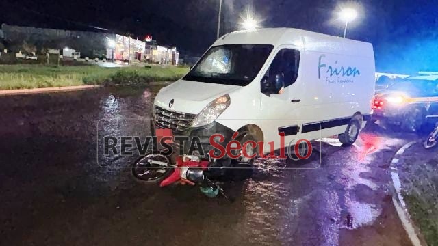 Uma colisão envolvendo uma van Renault pertencente ao supermercado Friron e uma motoneta Honda Pop 100 deixou uma mulher ferida na noite desta segunda-feira, 10 de novembro de 2025, na rotatória da BR-364 que dá acesso à avenida Paraná, no Setor 06, em Vilhena.