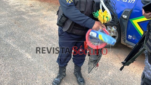 Ele foi conduzido, juntamente com os materiais apreendidos, à Unidade Integrada de Segurança Pública (UNISP), onde o caso foi registrado e segue sob investigação.