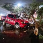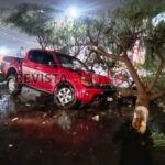 Motorista perde controle de L200 Triton e bate em árvore na avenida Melvin Jones; ocupantes ficam feridos