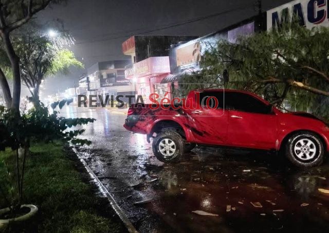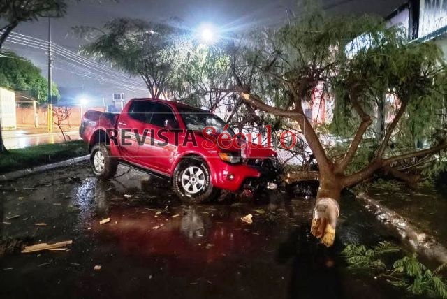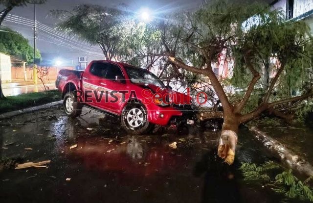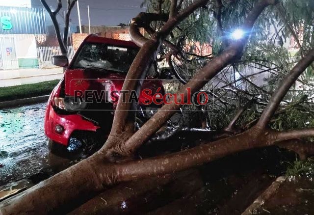 Motorista perde controle de L200 Triton e bate em árvore na avenida Melvin Jones; ocupantes ficam feridos