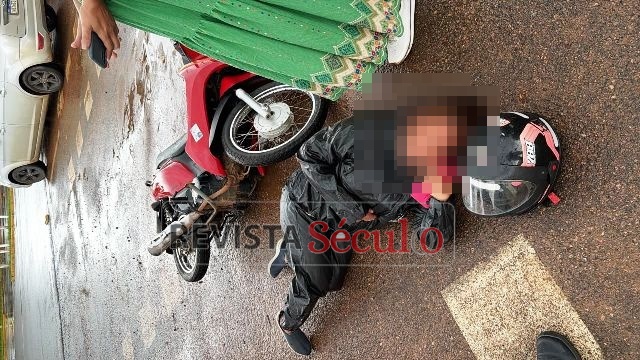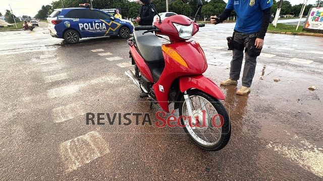 Com a força da batida, a motociclista sofreu escoriações e recebeu atendimento da Unidade de Resgate do Corpo de Bombeiros Militares, sendo encaminhada ao pronto-socorro do Hospital Regional.
