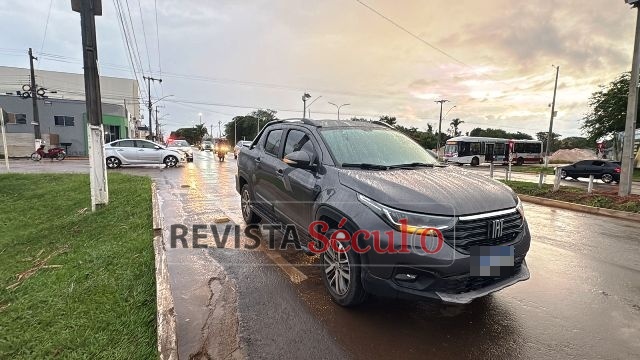 Conforme apurado, a motociclista conduzia uma Honda Biz vermelha pela avenida Carmelita Firmino dos Anjos (34), sentido avenida Paraná, colidiu contra uma picape Fiat Toro.