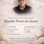 O velório de Reinaldo terá início a partir das 15h30 desta segunda-feira, 29 de dezembro, na Capela Mortuária Municipal de Vilhena.