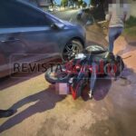 Motociclista fica ferida após colisão com carro em cruzamento no bairro Parque São Paulo, em Vilhena