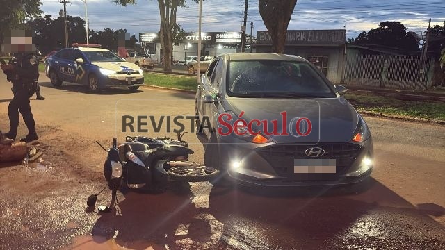 No final da tarde desta segunda-feira, 08 de dezembro, uma colisão entre uma motoneta Honda Biz 125, de cor preta, e um Hyundai HB20 sedan foi registrada no cruzamento da avenida Paraná com a rua 608, no bairro Parque São Paulo, em Vilhena (RO).