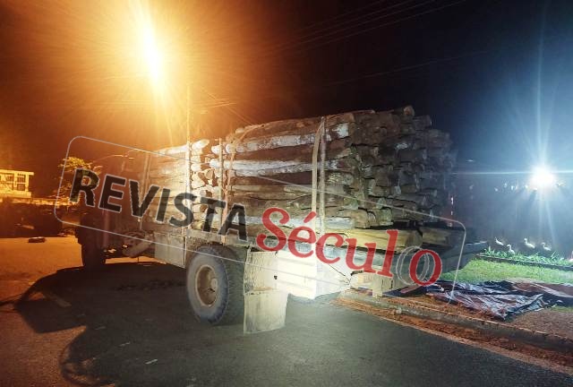 Ao notarem a presença policial, os condutores abandonaram as cargas, jogando no chão aproximadamente 20 toras de madeira nativa, e tentaram se evadir do local.