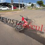 Bicicleta elétrica e carro de passeio colidem em cruzamento e mulher fica ferida em Vilhena