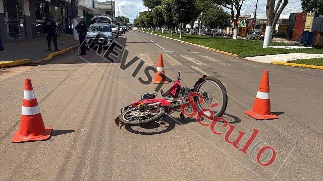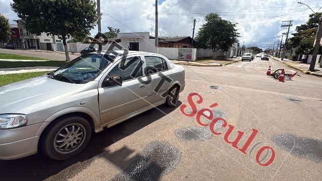 Colisão entre carro e bicicleta elétrica deixa jovem ferida em cruzamento movimentado de Vilhena