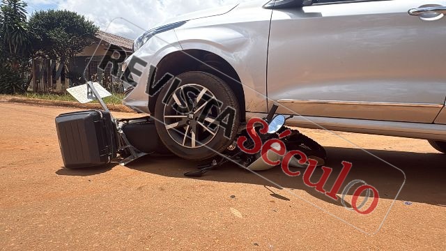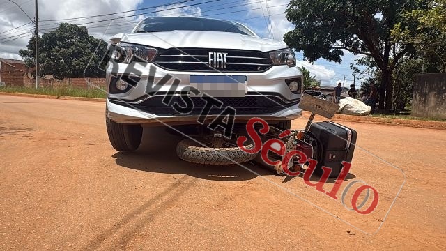 Na manhã desta quarta-feira, 04 de fevereiro de 2026, uma colisão envolvendo um automóvel e uma motocicleta foi registrada no cruzamento das avenidas Arnaldo Batista de Andrade, Genival Nunes da Costa e Goiás, localizado no Setor 06, bairro Parque São Paulo, em Vilhena (RO).