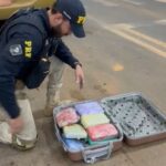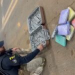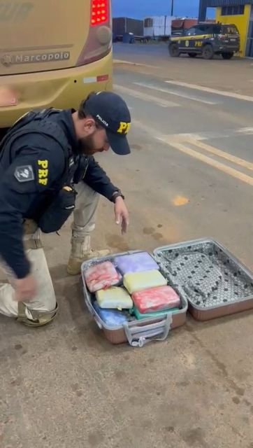 No entanto, os policiais localizaram em seus pertences o ticket de identificação de uma mala despachada. Diante da contradição, a equipe realizou vistoria no bagageiro do ônibus e encontrou a bagagem indicada, onde estavam tabletes de skunk, totalizando 10,74 quilos da droga.