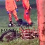 O acidente foi registrado na noite desta terça-feira, 03 de fevereiro de 2026, quase em frente ao supermercado Friron, no bairro Jardim América.