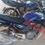 Ao chegar ao local, os policiais realizaram consulta junto ao sistema do Departamento Estadual de Trânsito (DETRAN) e confirmaram que a motocicleta, uma Yamaha YBR de cor azul, possuía restrição criminal ativa.