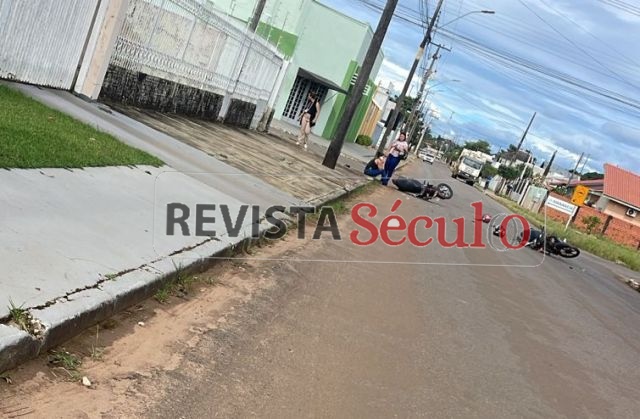 Um acidente de trânsito envolvendo duas motocicletas foi registrado neste sábado, 28 de março de 2026, no cruzamento das avenidas Brigadeiro Eduardo Gomes com Argu Bernardes, no bairro Jardim Eldorado, em Vilhena.