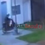 Após o furto, imagens de uma câmera de segurança instalada nas proximidades flagraram a fuga do criminoso. Nas gravações, é possível ver o suspeito passando com a motoneta por cima da calçada em uma rua lateral próxima ao local do crime.
