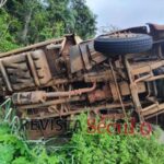 Caminhão tomba na BR-435 e segue às margens da rodovia sem atendimento de resgate