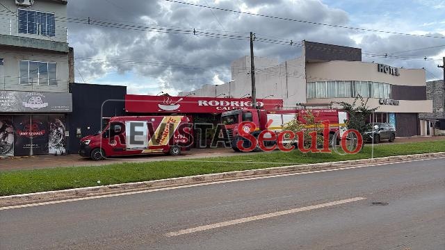 Na tarde desta quarta-feira, 1º de abril de 2026, um princípio de incêndio foi registrado em uma lanchonete localizada às margens da BR-174, no bairro Jardim América, em Vilhena.