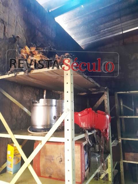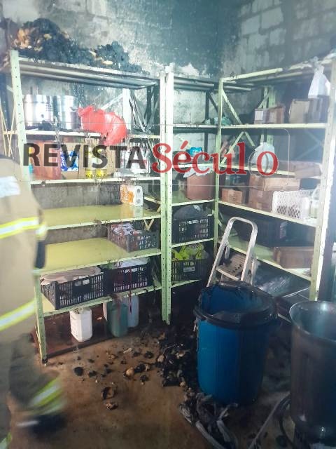 As chamas atingiram principalmente uma área com prateleiras, onde estavam armazenados utensílios de cozinha, muitos deles de plástico, além de outros materiais secos, que acabaram sendo consumidos pelo fogo.