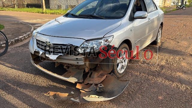 Na tarde desta terça-feira, 28 de abril de 2026, um acidente de trânsito foi registrado no bairro Jardim Eldorado, envolvendo um carro e uma motocicleta. A colisão aconteceu na avenida Juracy Correia Miller, esquina com a rua Agel Bernardes.