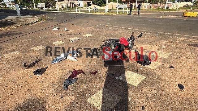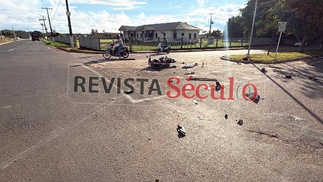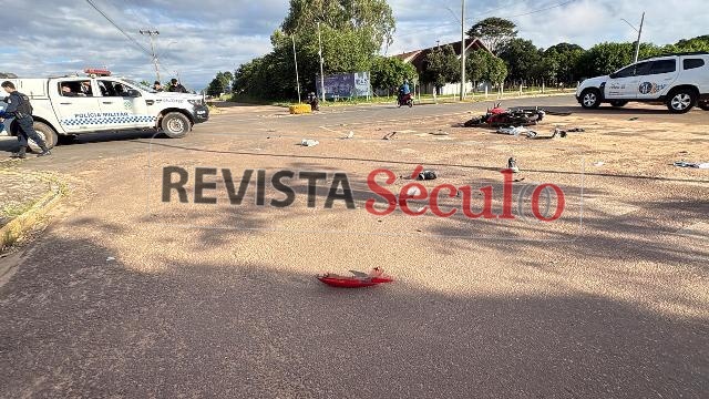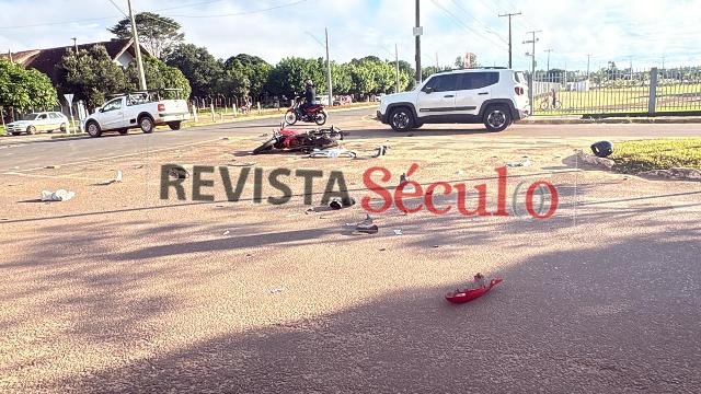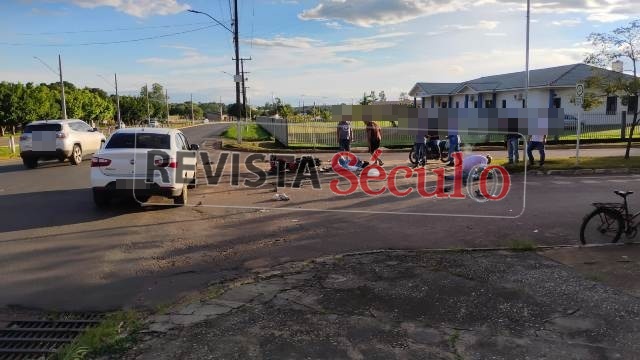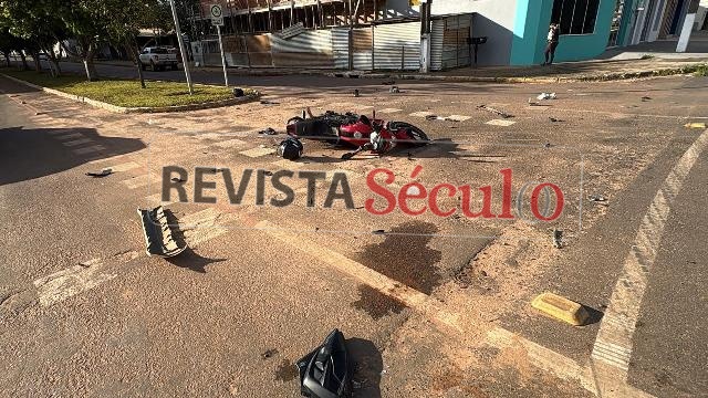 Grave colisão entre motocicleta e caminhonete deixa dois feridos em cruzamento movimentado de Vilhena
