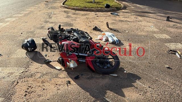 Na manhã desta quarta-feira, 29 de abril de 2026, uma grave colisão foi registrada no cruzamento da avenida Carmelita Firmino dos Anjos (34) com a avenida Brigadeiro Eduardo Gomes, bairro Jardim Eldorado, em Vilhena/RO.