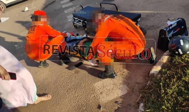 Com o impacto, um dos ocupantes da motocicleta sofreu fratura exposta em uma das pernas, enquanto o outro apresentou diversas escoriações pelo corpo.