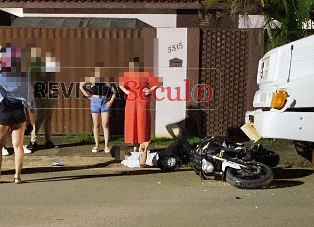 Motociclista cai, se arrasta com moto e acerta caminhão parado em Vilhena