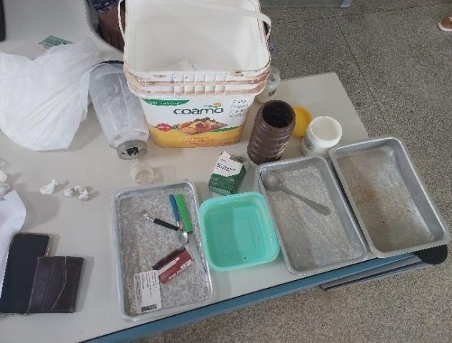 Durante as buscas, foram apreendidas substâncias análogas à cocaína, crack, insumos utilizados na produção e desdobramento, balança de precisão, materiais para embalo e quantia em dinheiro.